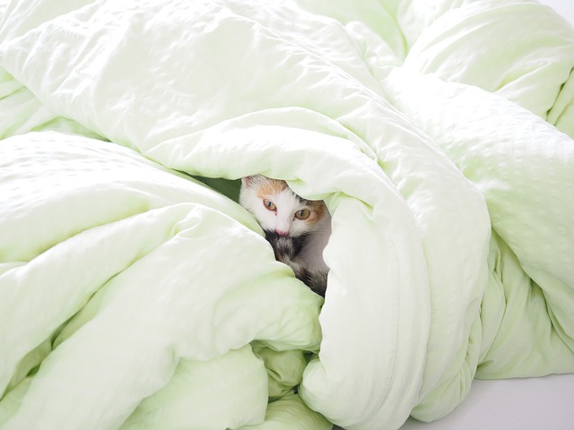 私の飼い猫は、冬になると毎日私の布団の中に入って眠るので、重い布団だと猫に過重がかかるため軽い羽毛布団でないと困るのです。